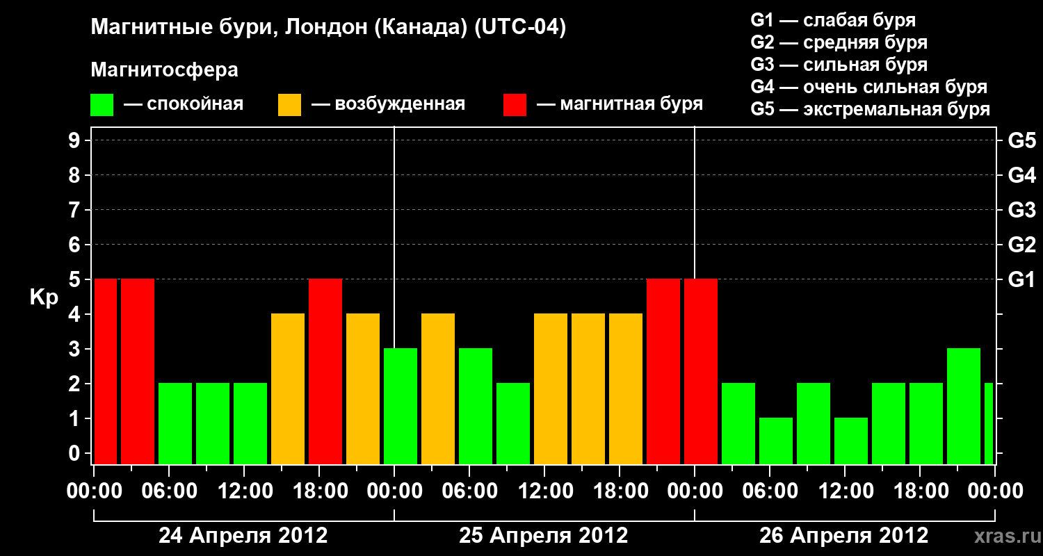 Магнитные бури Лондоне (Канада) в апреле 2012 года