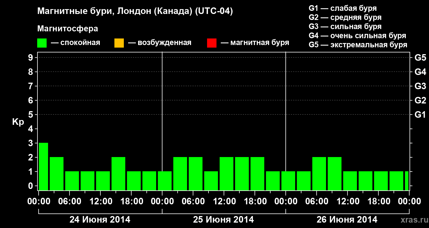 Магнитные бури Лондоне (Канада) 26 июня 2014 года
