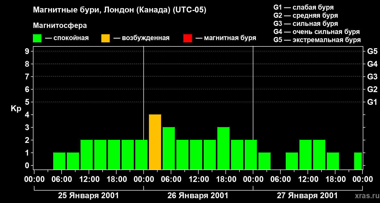Магнитные бури Лондоне (Канада) 27 января 2001 года