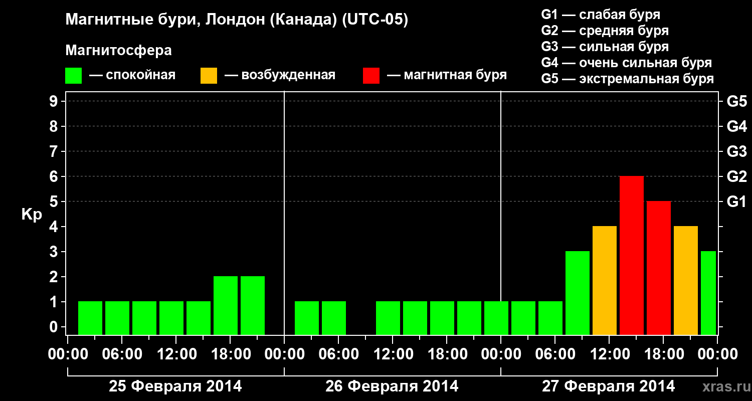 Магнитные бури Лондоне (Канада) в феврале 2014 года