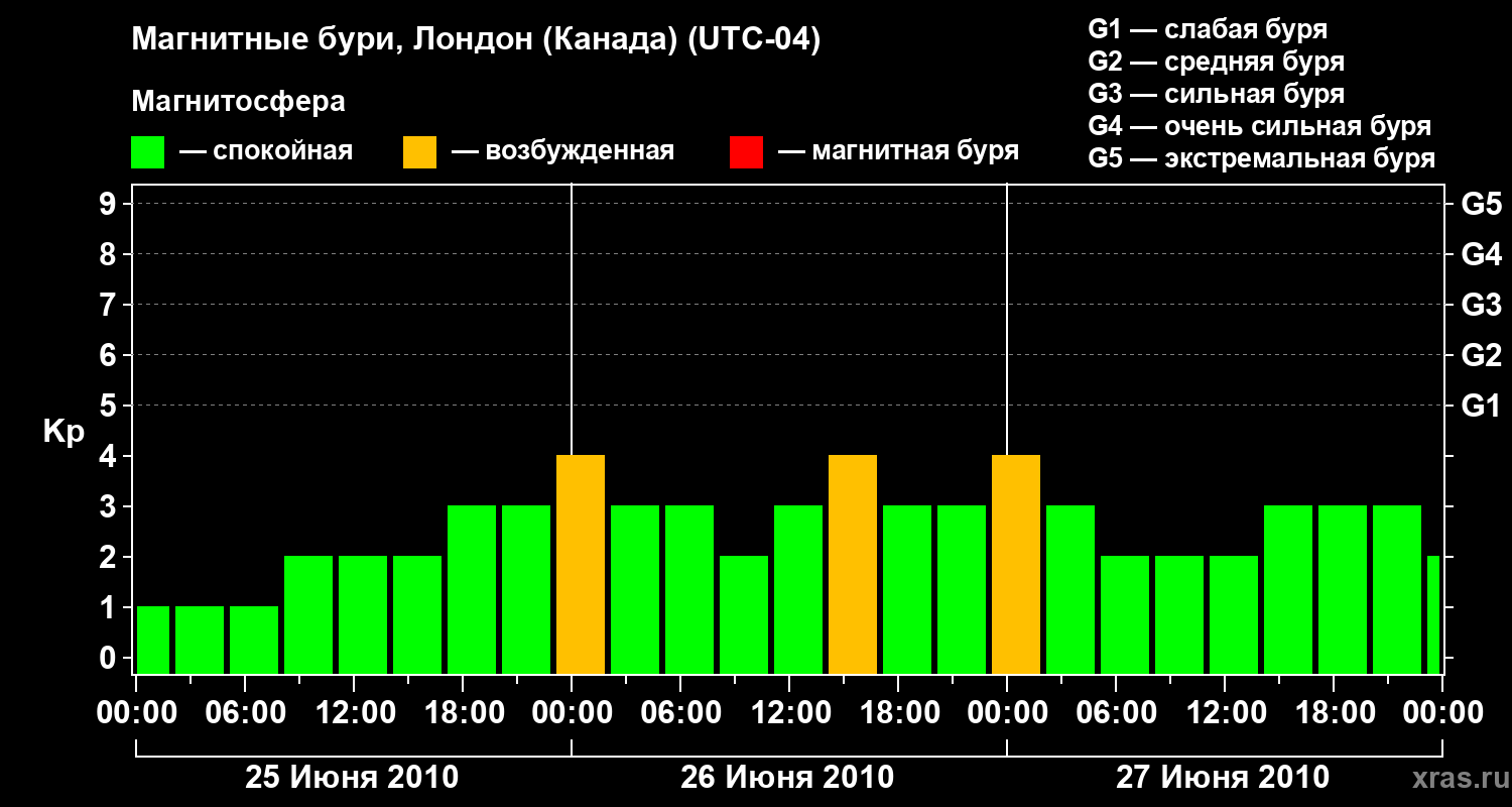 Магнитные бури Лондоне (Канада) 27 июня 2010 года