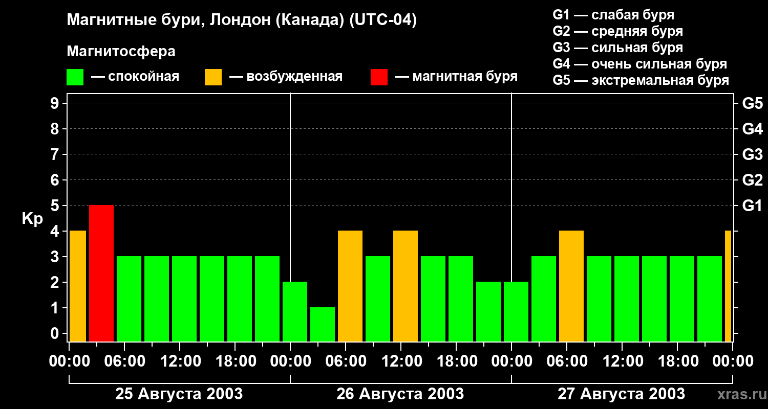 Магнитные бури Лондоне (Канада) — 27 августа 2003 года