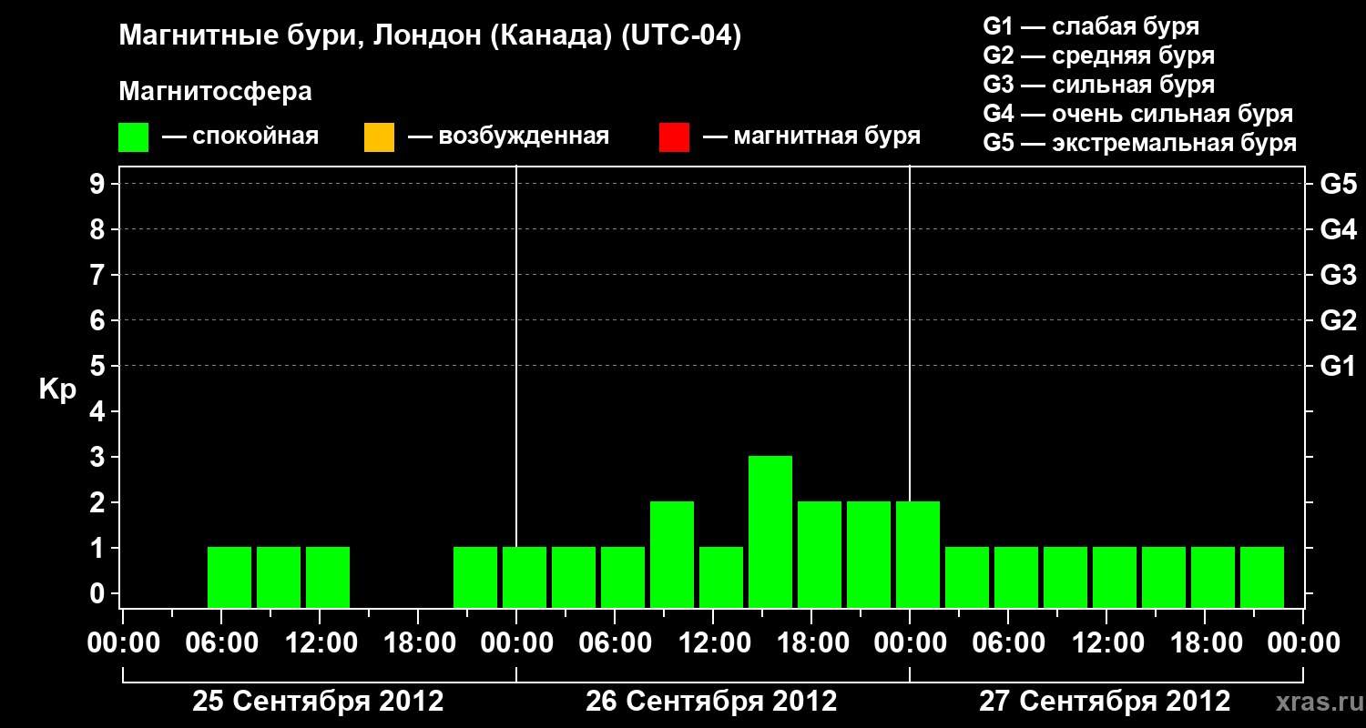 Магнитные бури Лондоне (Канада) в сентябре 2012 года