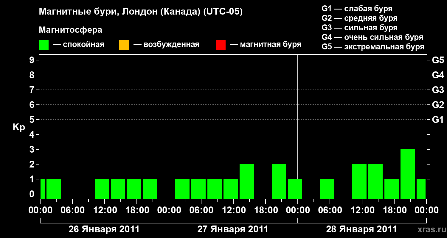 Магнитные бури Лондоне (Канада) 28 января 2011 года