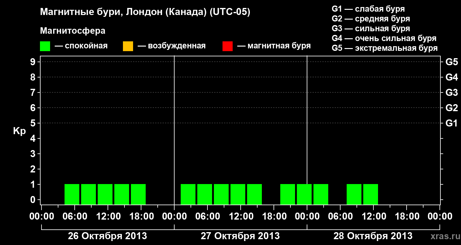 Магнитные бури Лондоне (Канада) 28 октября 2013 года