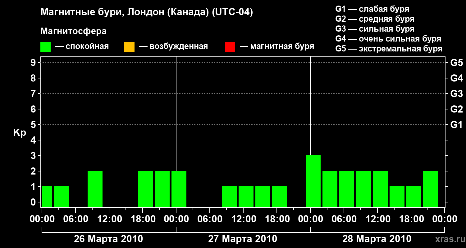 Магнитные бури Лондоне (Канада) 28 марта 2010 года