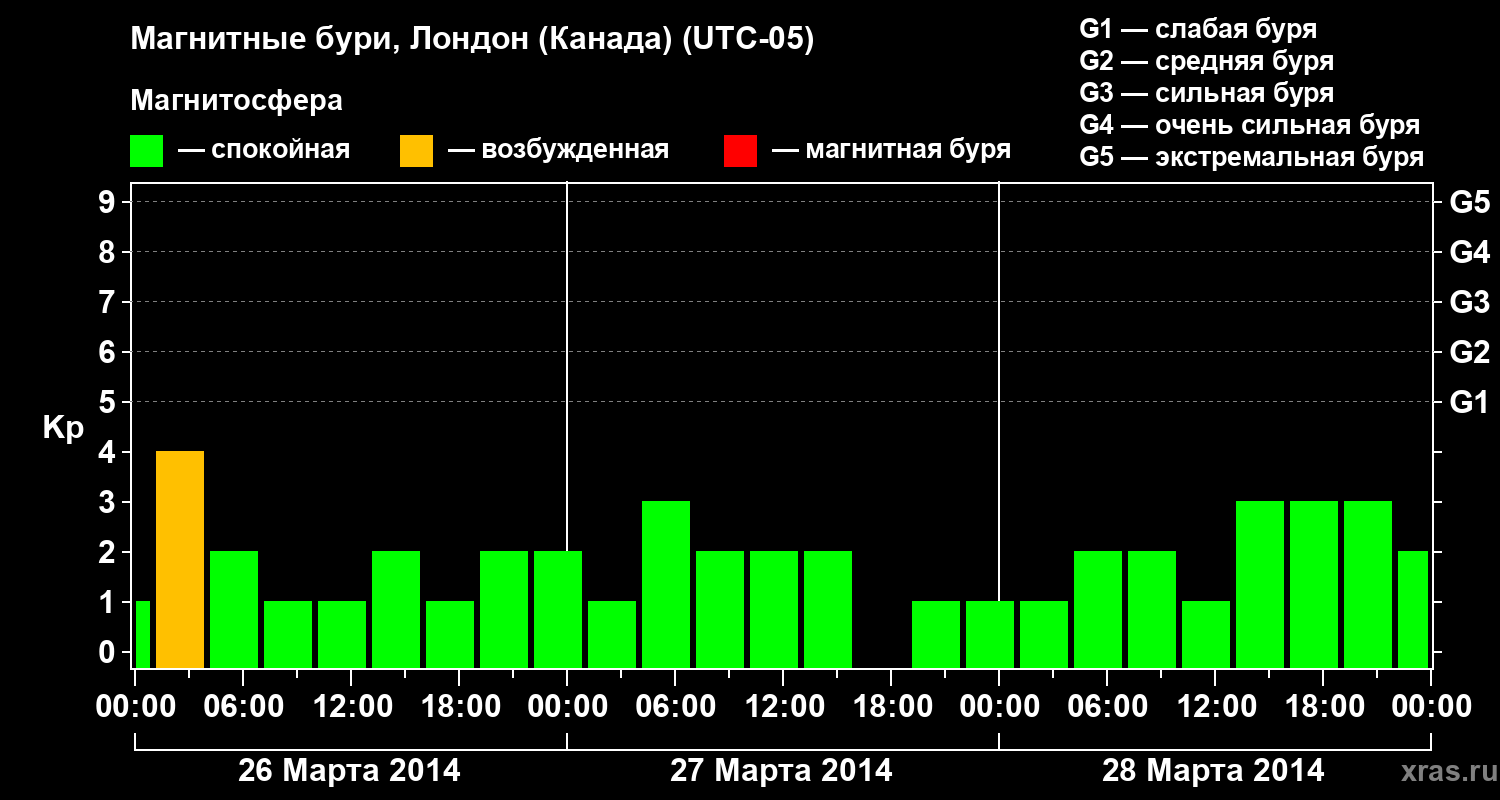 Магнитные бури Лондоне (Канада) 28 марта 2014 года