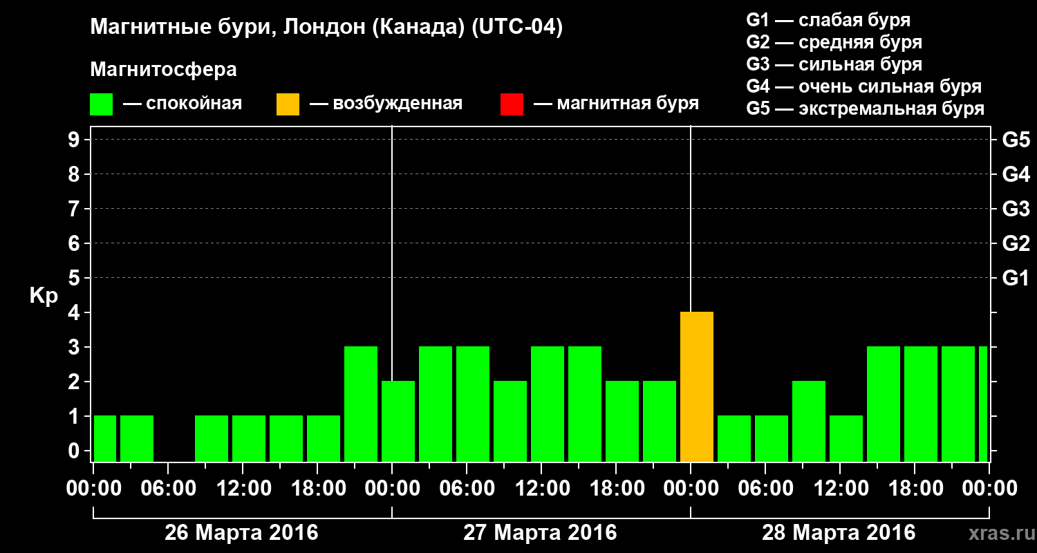 Магнитные бури Лондоне (Канада) — 28 марта 2016 года