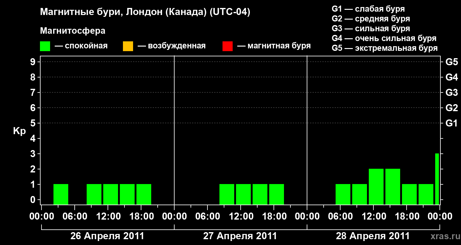 Магнитные бури Лондоне (Канада) в апреле 2011 года