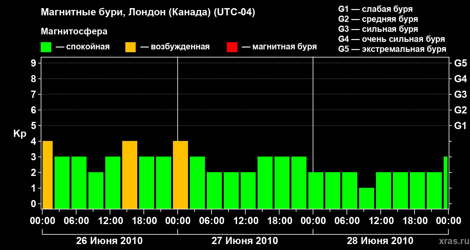 Магнитные бури Лондоне (Канада) 28 июня 2010 года