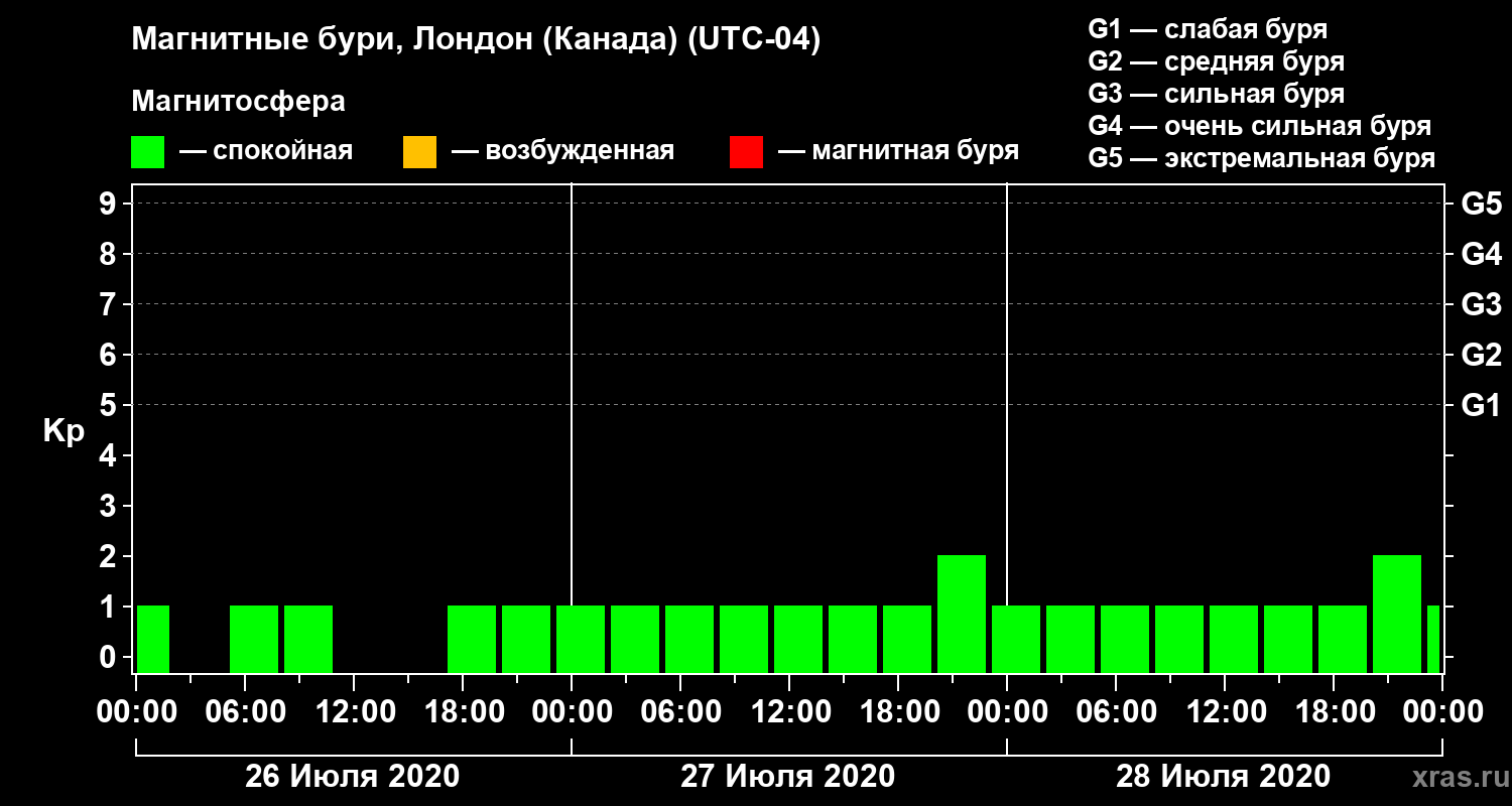 Магнитные бури Лондоне (Канада) 28 июля 2020 года