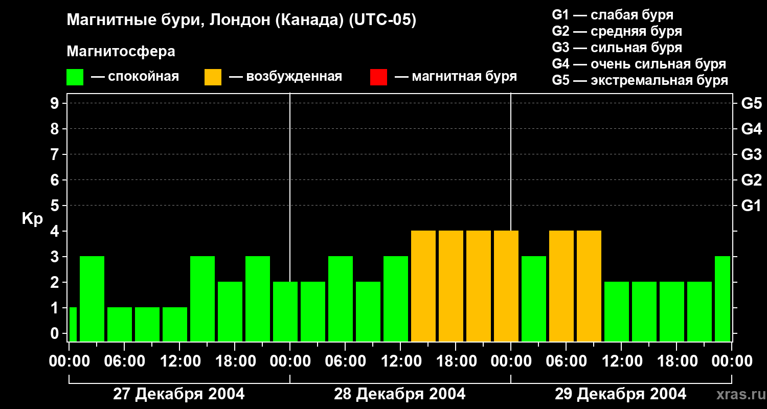 Магнитные бури Лондоне (Канада) — 29 декабря 2004 года