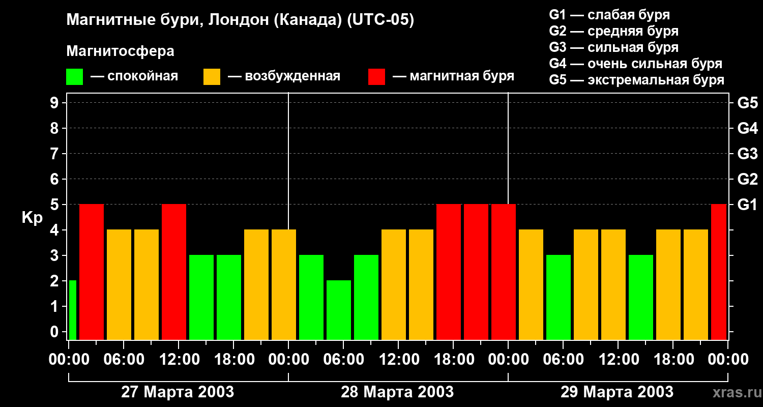 Магнитные бури Лондоне (Канада) — 29 марта 2003 года