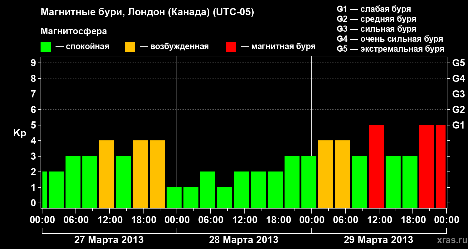 Магнитные бури Лондоне (Канада) 29 марта 2013 года