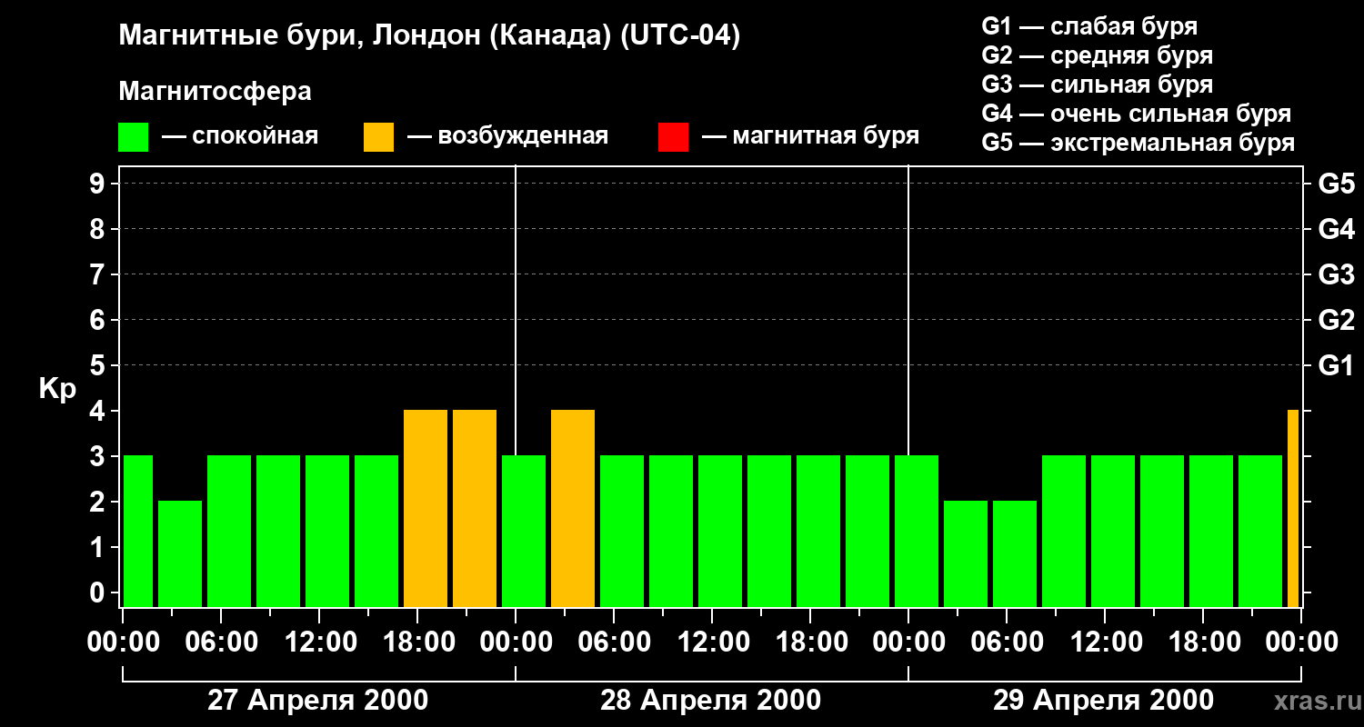 Магнитные бури Лондоне (Канада) 29 апреля 2000 года