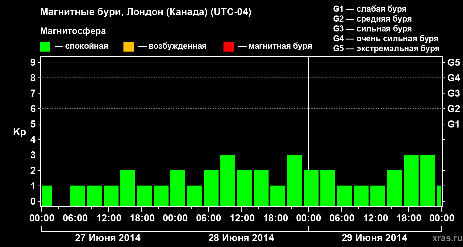 Магнитные бури Лондоне (Канада) 29 июня 2014 года
