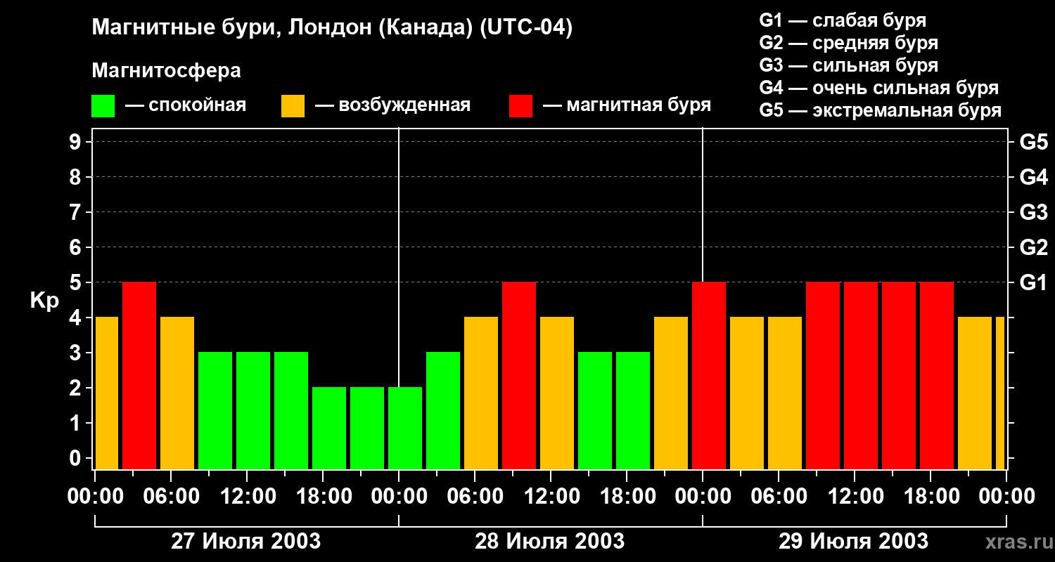 Магнитные бури Лондоне (Канада) — 29 июля 2003 года