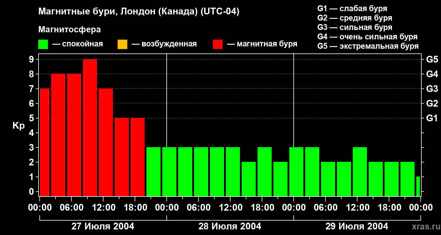 Магнитные бури Лондоне (Канада) — 29 июля 2004 года