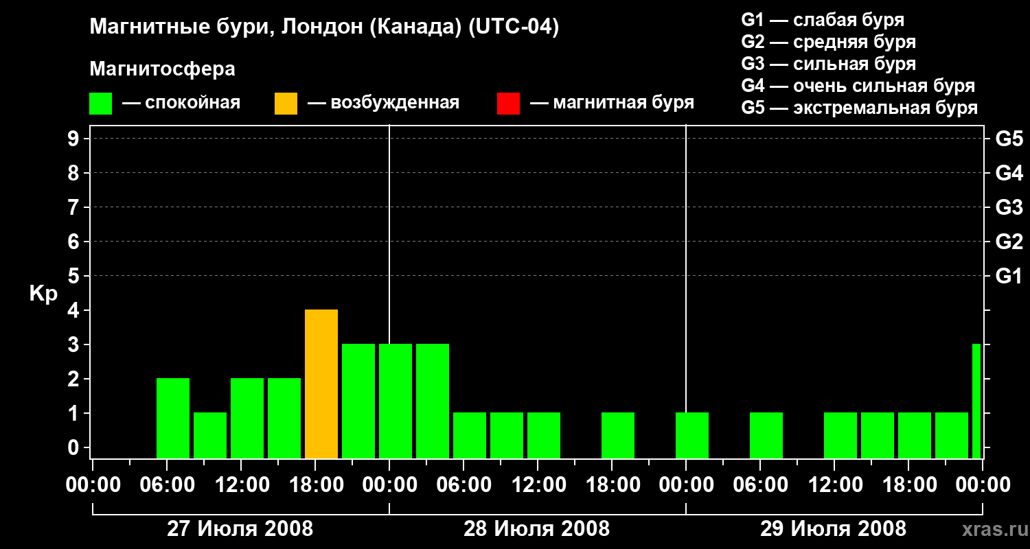 Магнитные бури Лондоне (Канада) в июле 2008 года