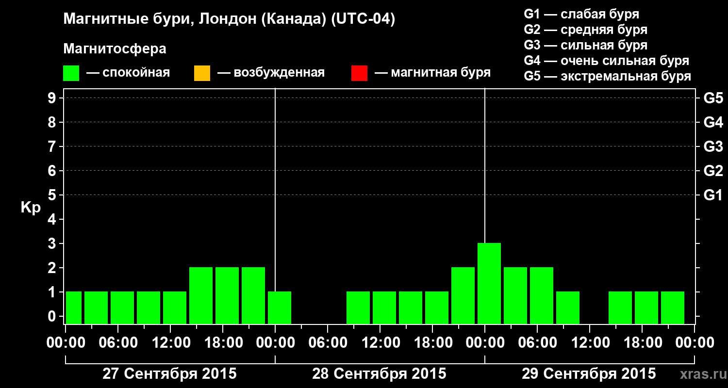 Магнитные бури Лондоне (Канада) в сентябре 2015 года