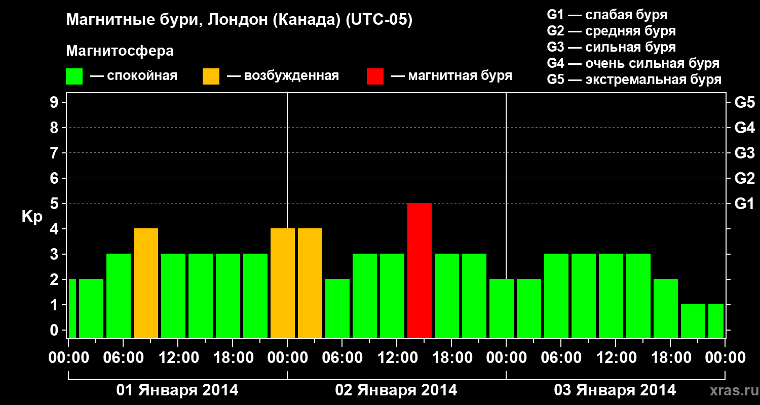 Магнитные бури Лондоне (Канада) 3 января 2014 года