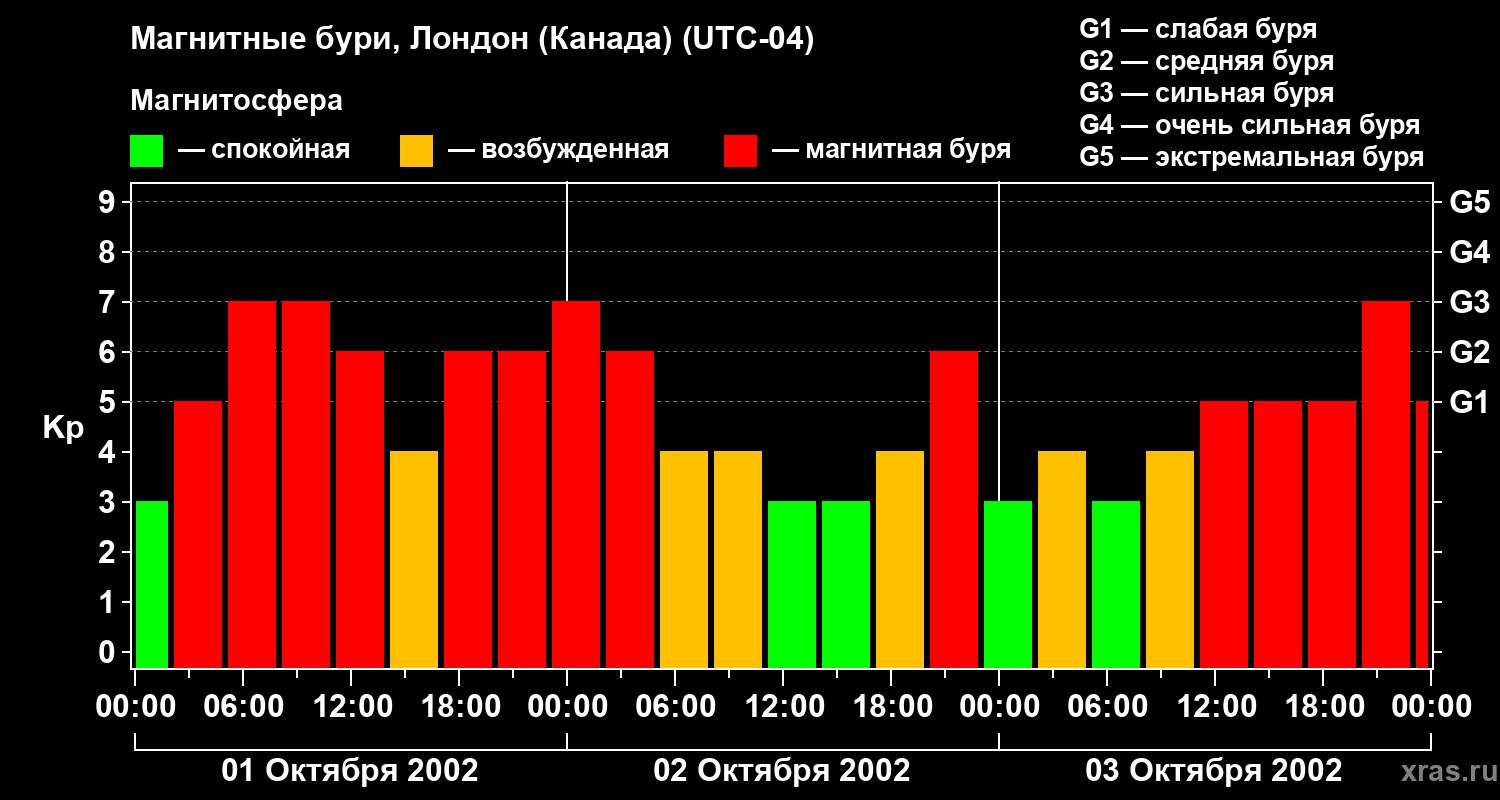 Магнитные бури Лондоне (Канада) 3 октября 2002 года