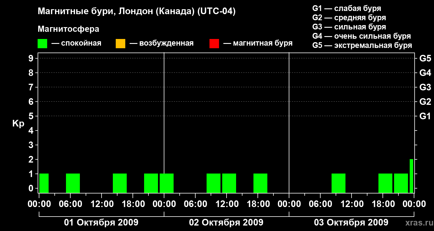 Магнитные бури Лондоне (Канада) 3 октября 2009 года