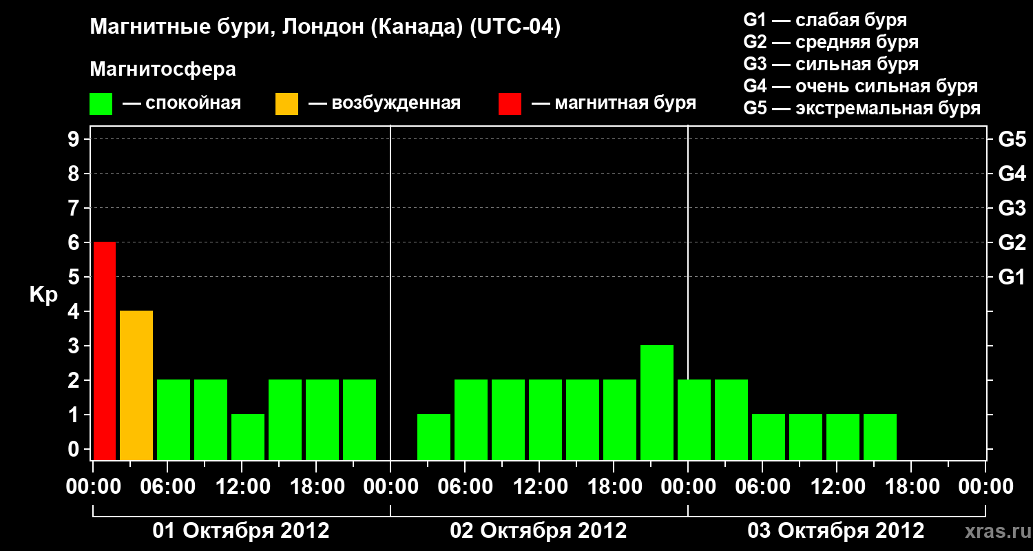 Магнитные бури Лондоне (Канада) 3 октября 2012 года