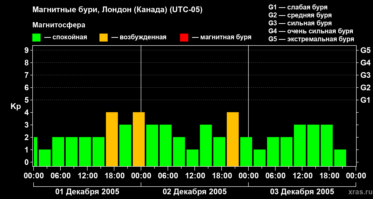 Магнитные бури Лондоне (Канада) — 3 декабря 2005 года