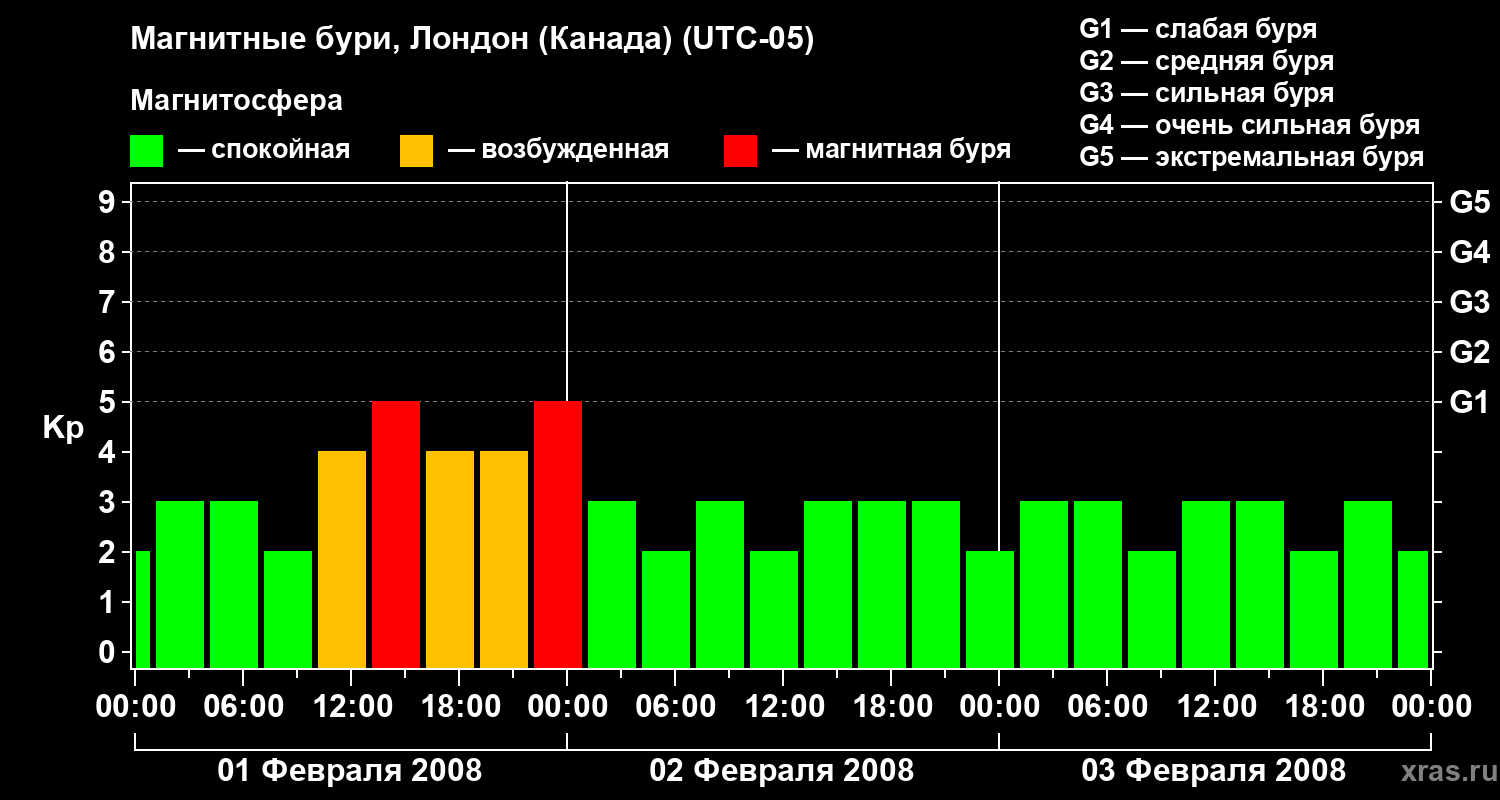 Магнитные бури Лондоне (Канада) 3 февраля 2008 года