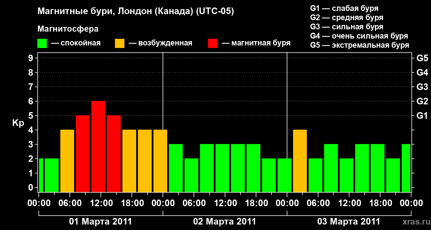 Магнитные бури Лондоне (Канада) 3 марта 2011 года