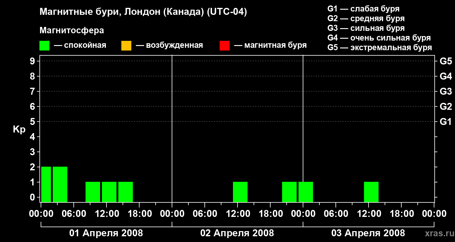 Магнитные бури Лондоне (Канада) 3 апреля 2008 года