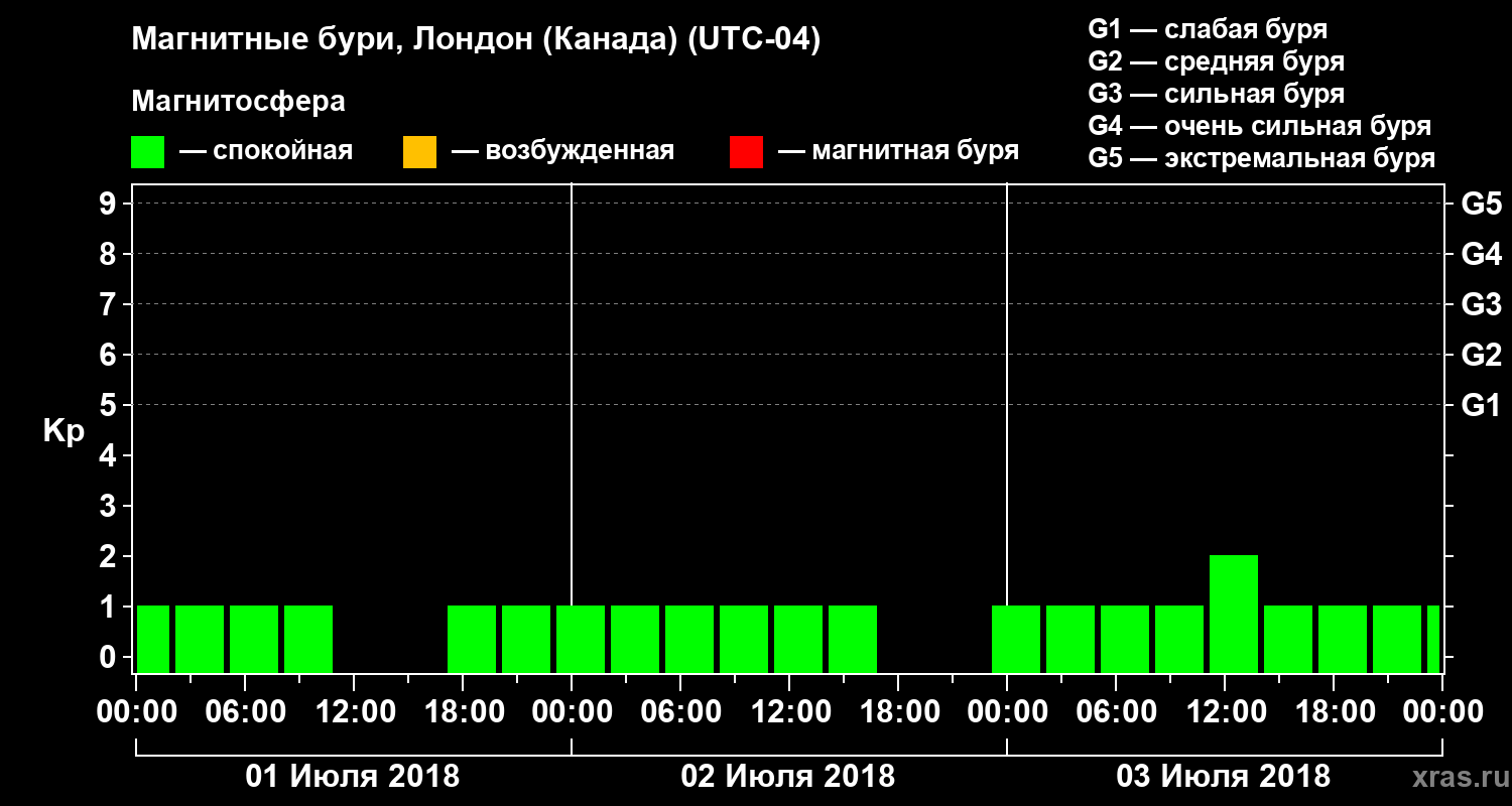 Магнитные бури Лондоне (Канада) 3 июля 2018 года
