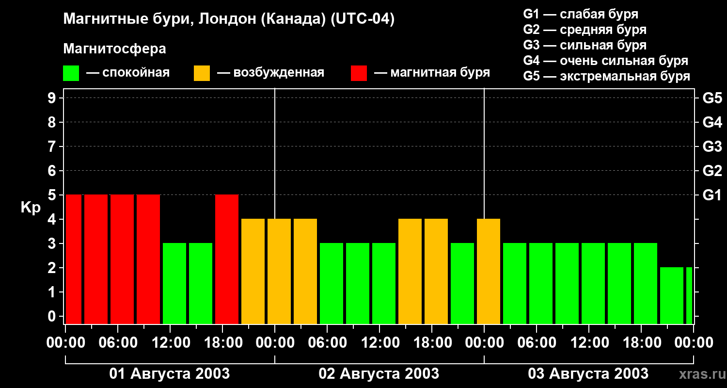 Магнитные бури Лондоне (Канада) — 3 августа 2003 года