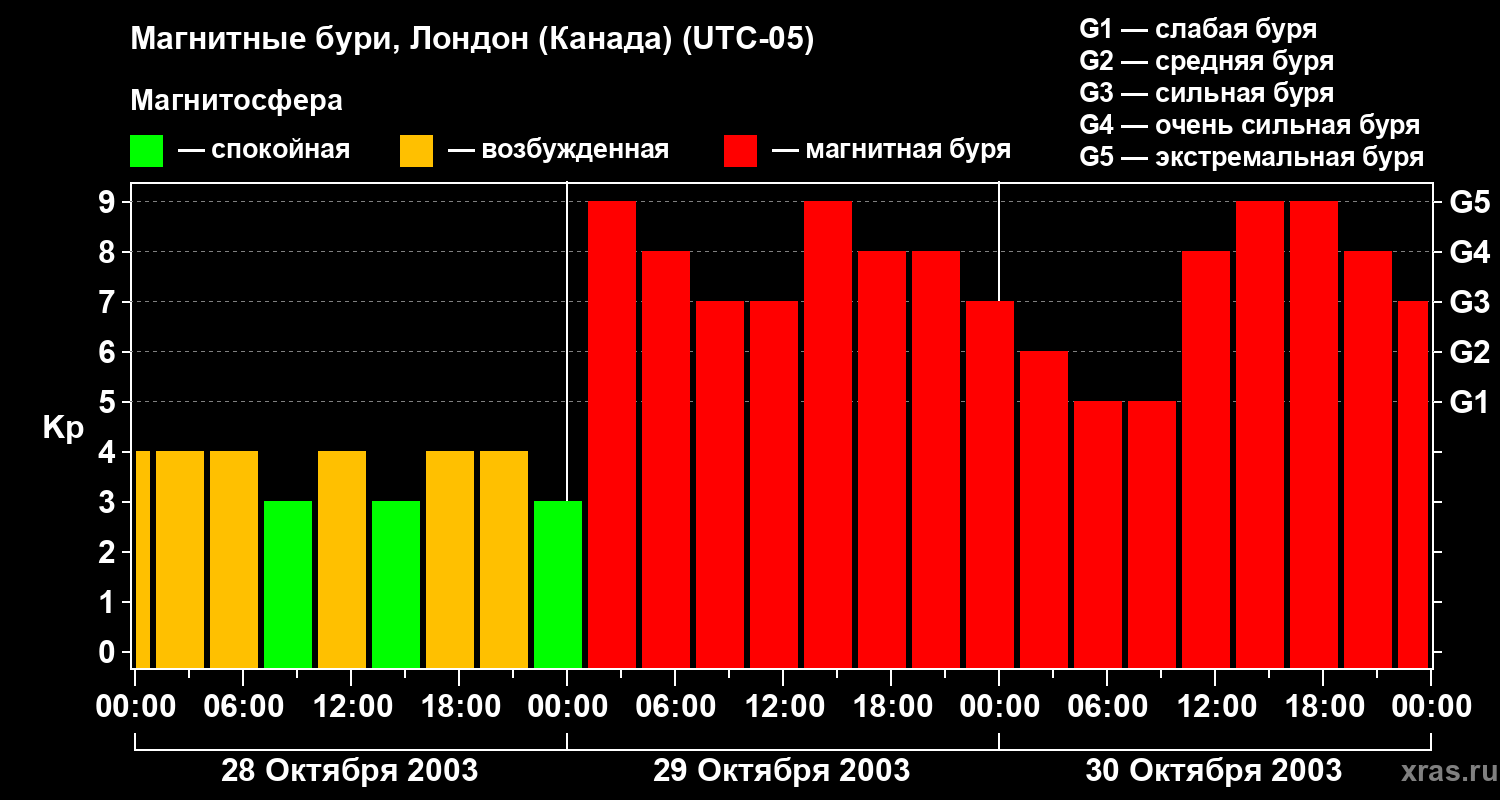 Магнитные бури Лондоне (Канада) — 30 октября 2003 года