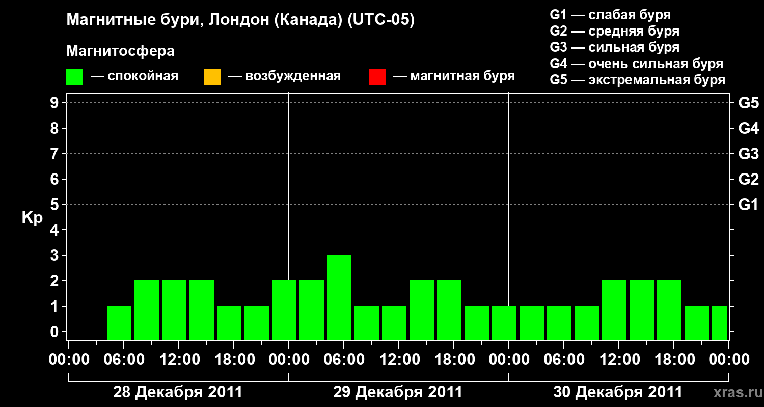 Магнитные бури Лондоне (Канада) — 30 декабря 2011 года