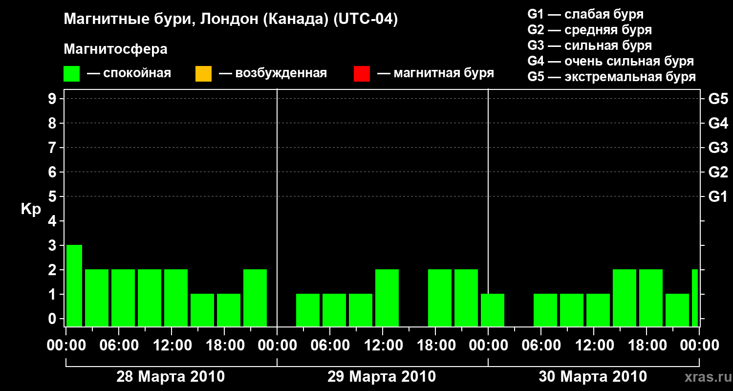 Магнитные бури Лондоне (Канада) 30 марта 2010 года