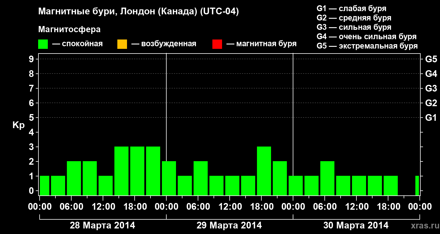 Магнитные бури Лондоне (Канада) 30 марта 2014 года
