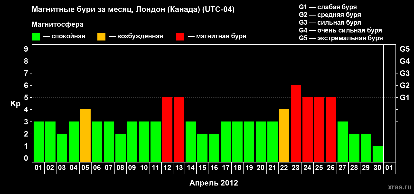 Магнитные бури Лондоне (Канада) в апреле 2012 года