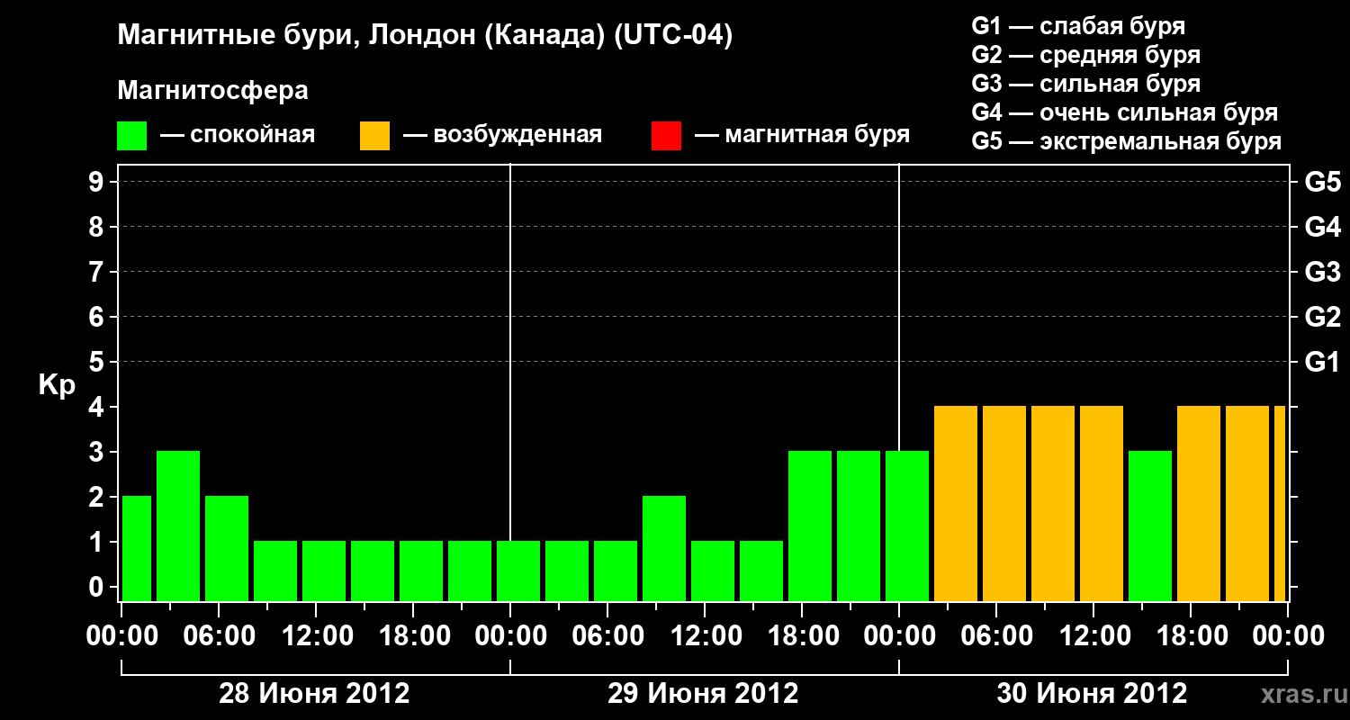 Магнитные бури Лондоне (Канада) 30 июня 2012 года