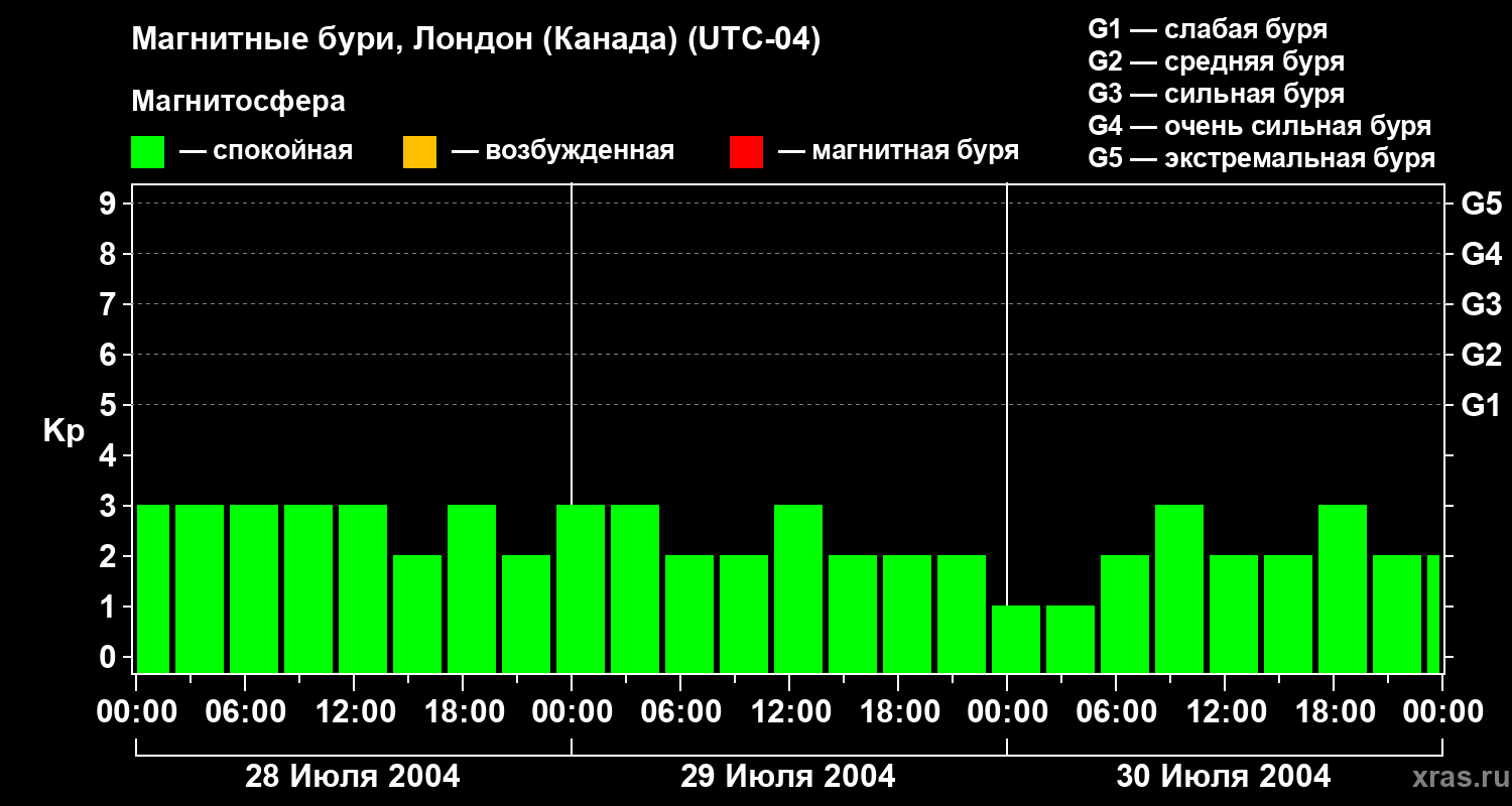 Магнитные бури Лондоне (Канада) — 30 июля 2004 года