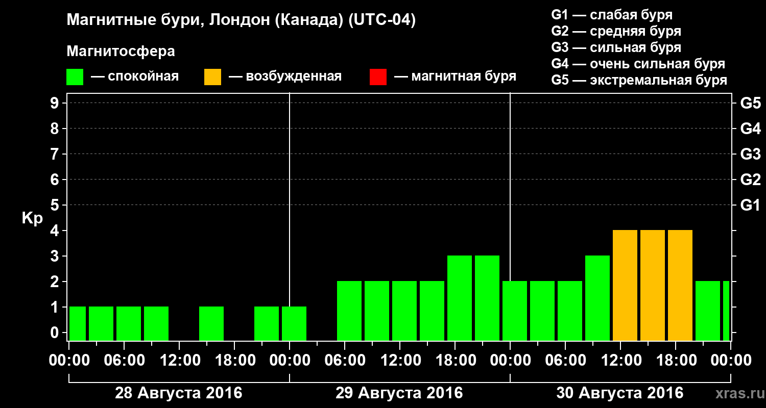 Магнитные бури Лондоне (Канада) 30 августа 2016 года