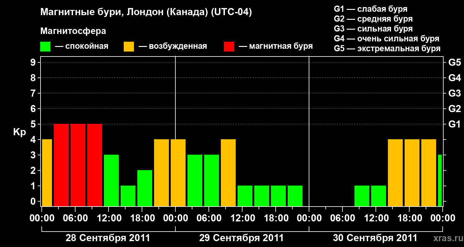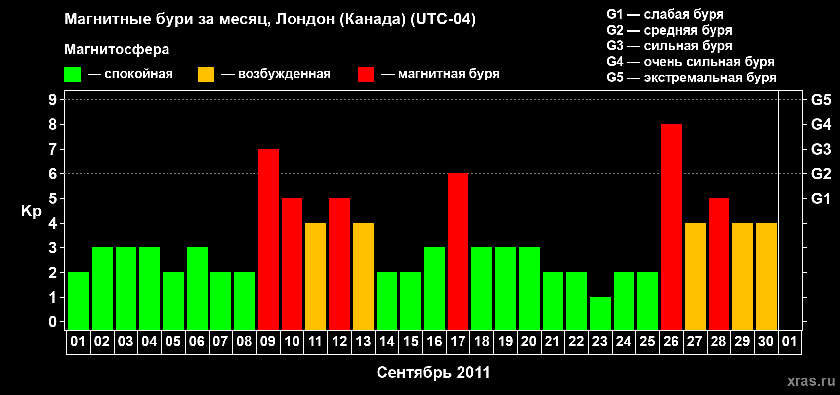 Магнитные бури Лондоне (Канада) в сентябре 2011 года
