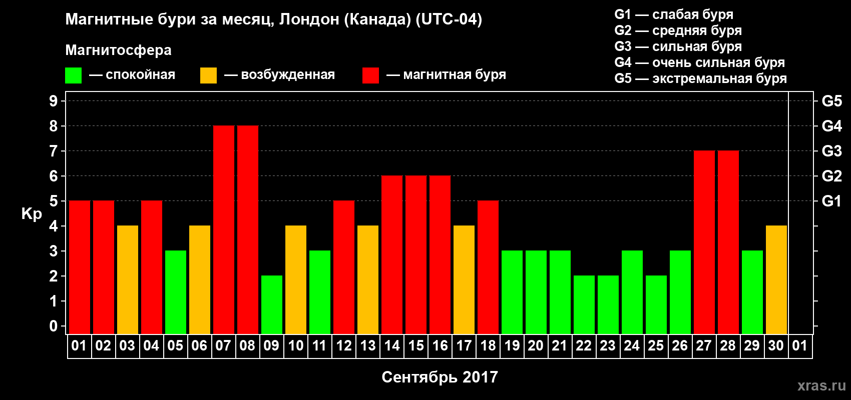 Магнитные бури Лондоне (Канада) в сентябре 2017 года