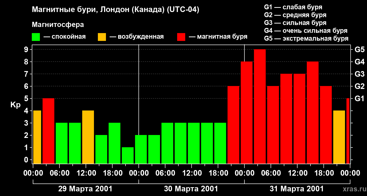 Магнитные бури Лондоне (Канада) — 31 марта 2001 года