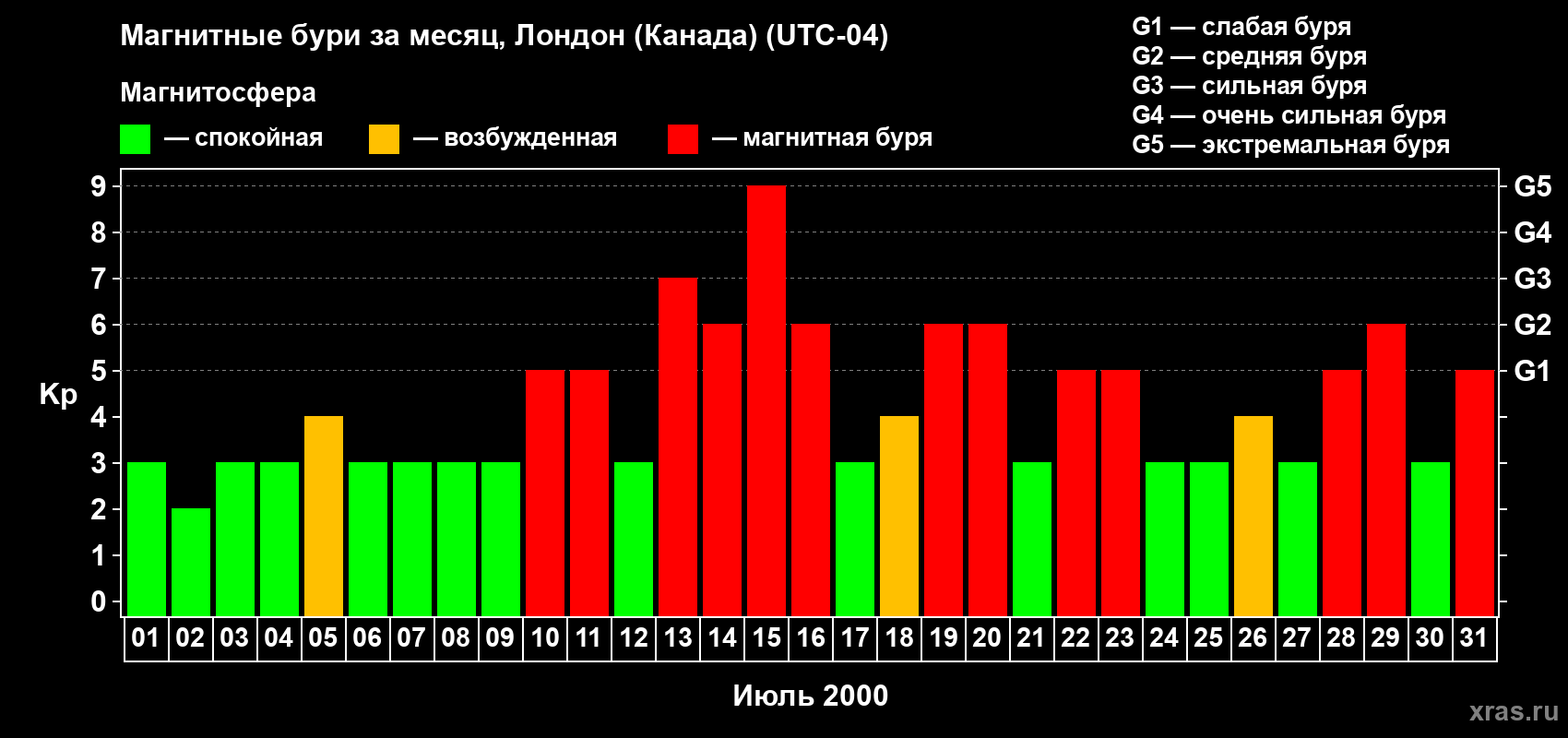 Магнитные бури Лондоне (Канада) — 31 июля 2000 года