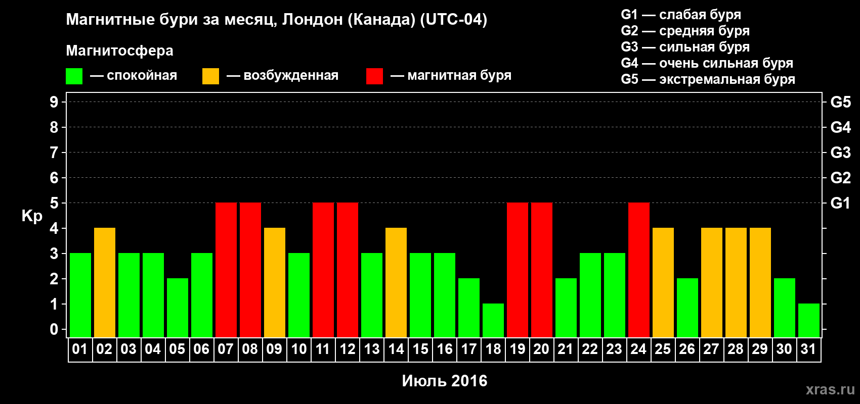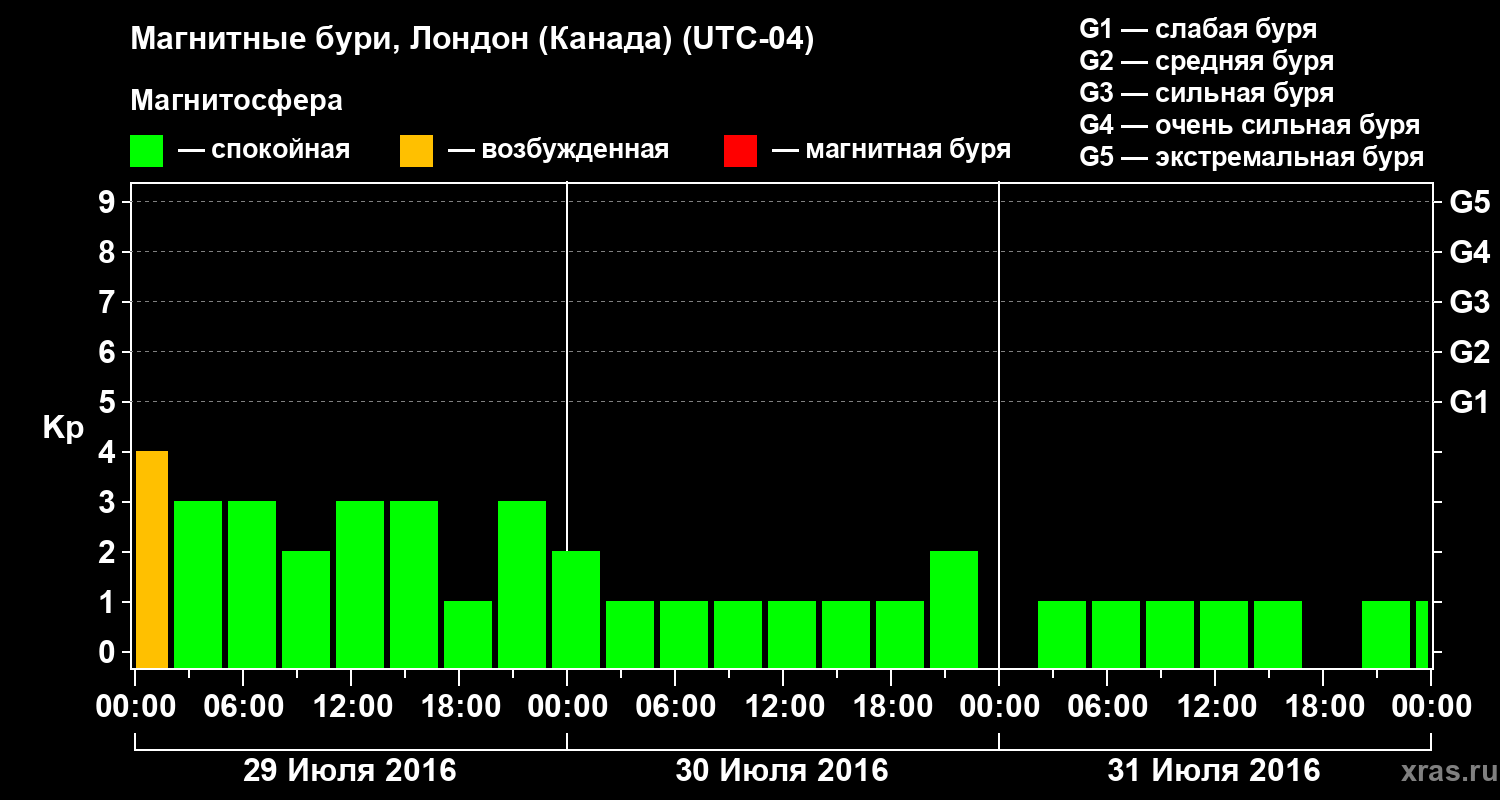Магнитные бури Лондоне (Канада) в июле 2016 года