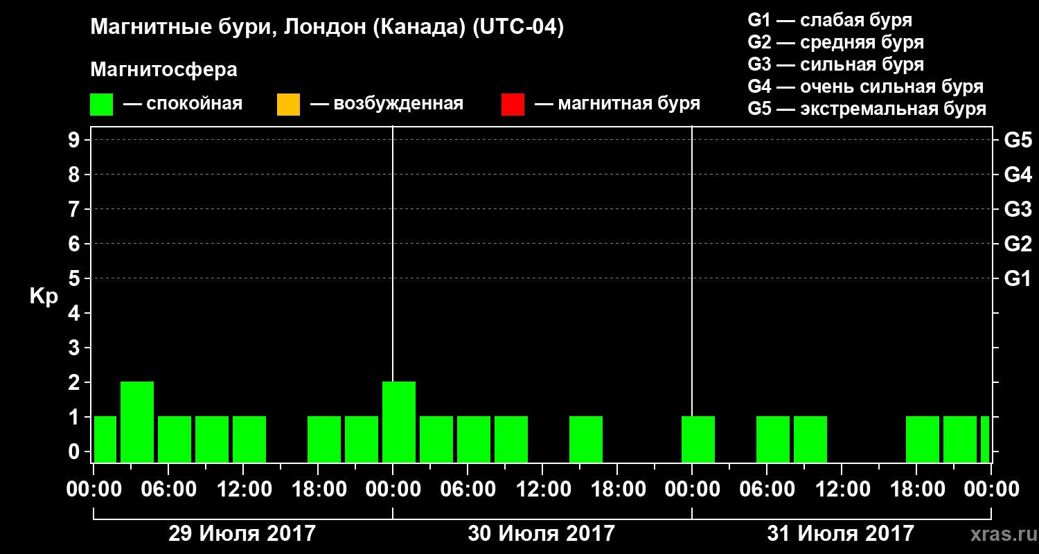 Магнитные бури Лондоне (Канада) в июле 2017 года