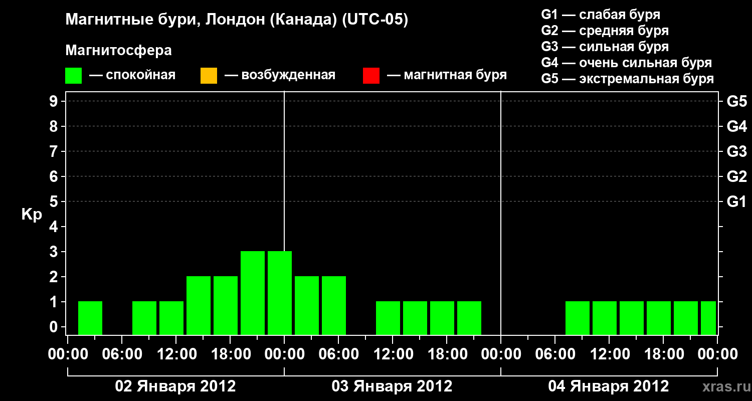 Магнитные бури Лондоне (Канада) 4 января 2012 года