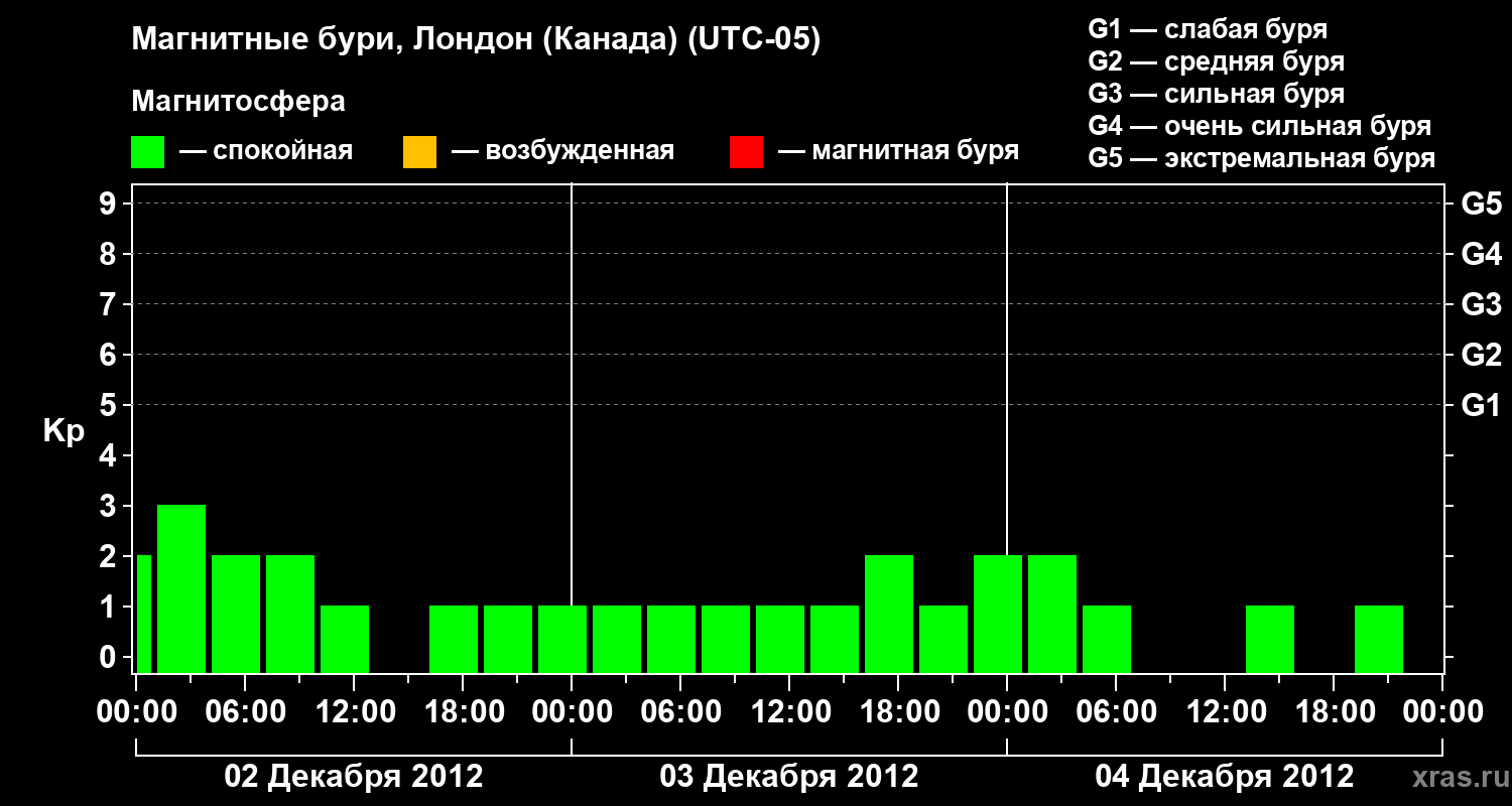 Магнитные бури Лондоне (Канада) в декабре 2012 года